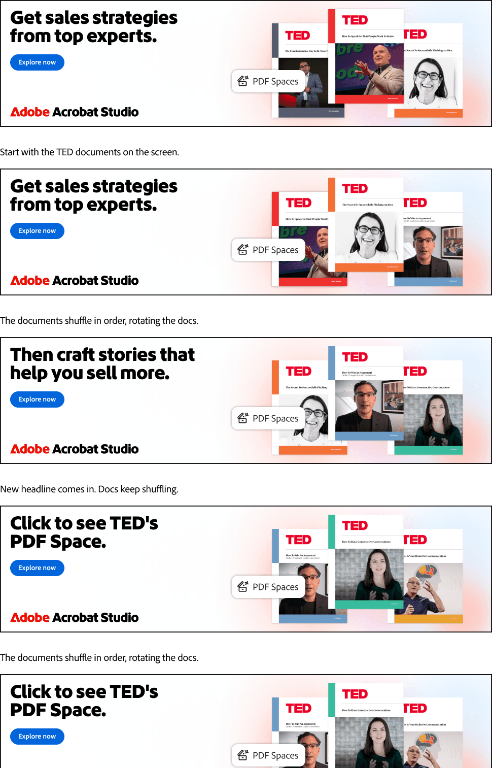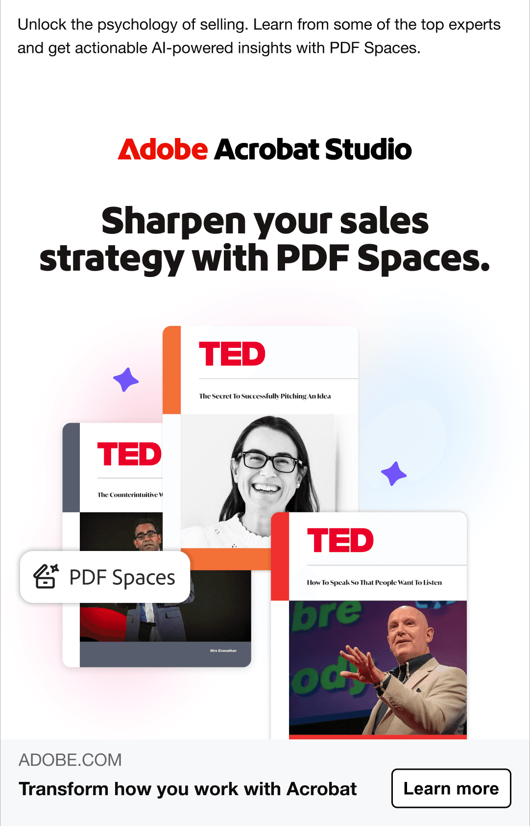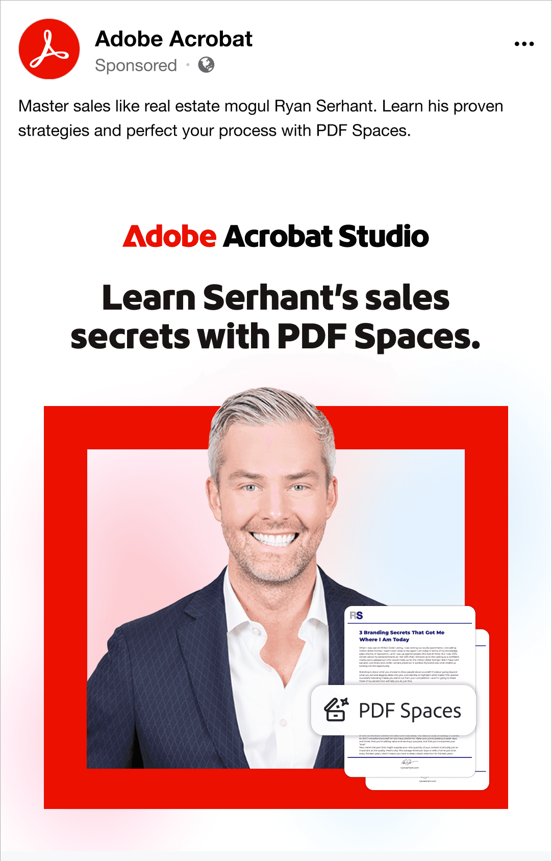 Launched a paid social and animated display ad campaign for Adobe Acrobat Studio's PDF Spaces tool, leveraging partnerships with real estate mogul Ryan Serhant and TED Talks.