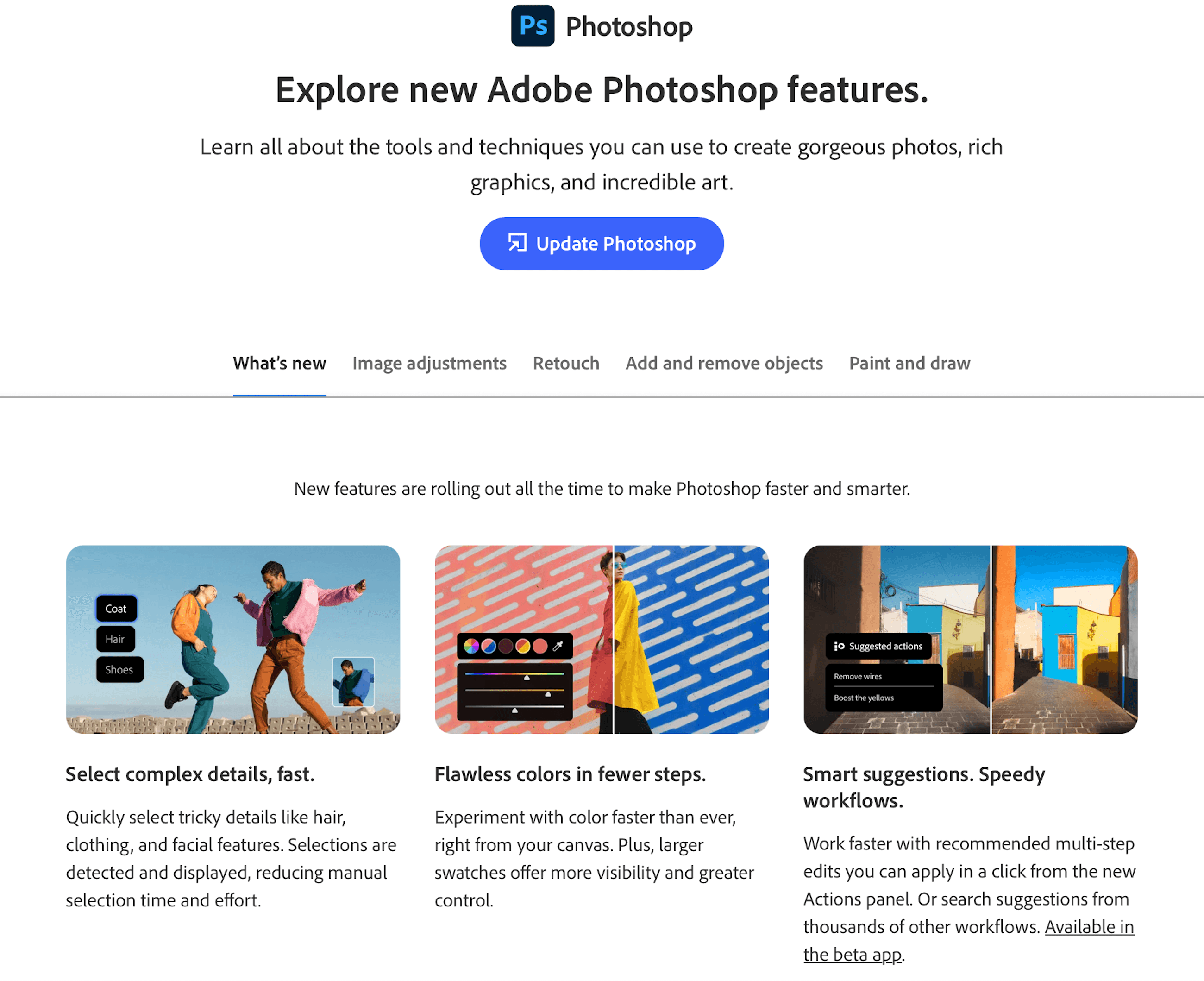 Pitched messaging angles for the three feature announcements, then wrote and refined headlines and body copy through multiple editorial rounds. Focused on translating technical functionality into clear, action-oriented language that resonated with the Photoshop creative community.