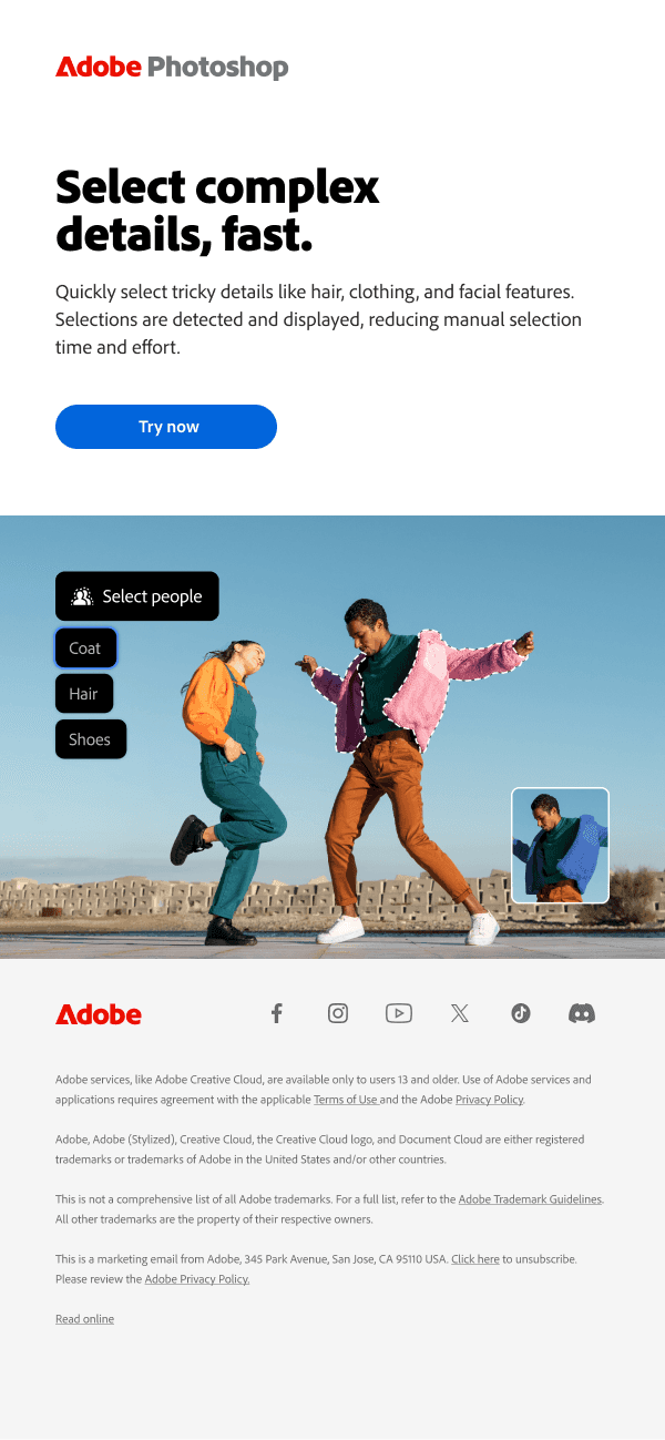 Created a multi-channel campaign for three Photoshop feature updates unveiled at Adobe MAX London 2025, including design and copy assets across web, social media, and email.